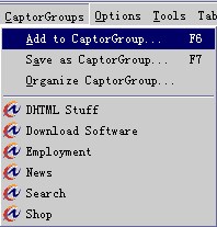 三、网页浏览方法 1.使用“New”按钮或“File”菜单浏览网页 如果你设置了主页,启动Netcaptor5.5后将自动打开该主页。要打开新的网页,则单击“常用工具栏”上的“New(新建)”按钮或从“File(文件)”菜单中选择“New Browser(新建窗口 )”下的相应选项增加一个新的窗格。在地址栏中键入相应的网址(如果你正在使用“中文网址”软件,也可直接键入相 图9 应的中文网址)后回车确认即可打开该网页(见图9)。 2.使用“Favorites(收藏夹)”浏览网页 所谓的“Favorites(收藏夹)”其实就是一个“书签”,它可以让我们很方便的打开自己最喜欢的网页。Netcaptor5.5的“Favorites(收藏夹)”功能也很强大,可以方便的添加、删除、分组,而且还可以一次同时打开多个网页,和后面要讲的“CaptorGroup(快捷组)”功能相似。方法很简单:当浏览某个网页觉得需要收藏的,可单击“Favorites(收藏夹)”菜单下的“Add to Favorites(添加到收藏夹)”选项或直接单击常用工具栏上的“Add Favorites(添加到收藏夹)”图标按钮即可弹出一个“添加到收藏夹”窗口(见图10),从中定义网页的名称和保存位置后单击“确定”。以后当需再次访问该网站,只需从“Favorites(收藏夹)”选择即可。 图10 3.使用“CaptorGroup(快捷组)”浏览网页 Netcaptor5.5为我们预置了6个快捷组,有“Download Software(下载软件)”、“电子商务”、“News(新闻)”、“Search(搜索)”等,大都是国外的网站,不太适合我们的习惯。但我们可以添加属于我们自己的快捷组。使用方法和添加“Favilable(收藏夹)”的方法大同小异。单击相应的“CaptorGroup(快捷组)”后即可同时打开该组的所有网页(见图11)。 图11 4.使用“Show CaptorGroup(历史记录)”浏览网页 Netcaptor5.5的“Show CaptorGroup(历史记录)”又称“显示快捷栏”,它较IE又有了更大的进步。单击“常用工具栏”中的“显示快捷栏”按钮,在浏览窗口的左侧将出现一个小的窗口,该窗口的下方有4个选项(见图12),不但可以按访问时间浏览,还可以按照“收藏夹”、“搜索引擎”和“资源管理器”等形式浏览,非常方便。 图12