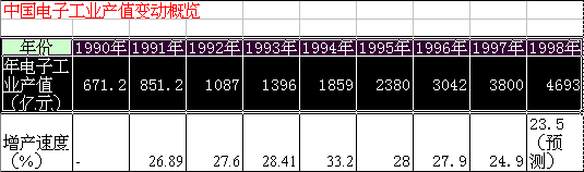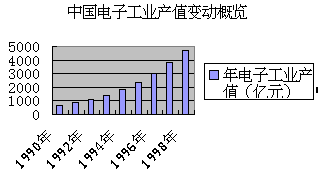 | 使用图表时,选择合适的图表,并将其变得更加的精美是我们最关心的事情,在Excel中提供的标准图表类型有14种,在使用中需要根据自己的应用情况来选择不同类型的图表。 通常处理产品在一段时间内的生产情况或销售情况的数据时,使用“柱形图”或者“条形图”。“柱形图”更强调数据随时间的变化。在“条形图”中主要表现了各项之间的差别。 如果需要体现出每一个项目占整体的比例时,通常使用“饼图”。 散点图最适合处理一些实验数据,它可以依据数据绘出平滑的变化曲线,非常适合科学计算和分析。 在上面的介绍中,每一个图表都制作得非常漂亮,而直接使用图表向导绘出的图表颜色却十分的单调,您一定也很想将自己的图表也设计得十分精美。下面是“中国电子工业产值变动概览”表,我们就以这张表中的数据来设计一份精致的图表。 |