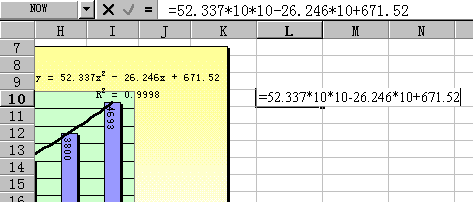 在数据系列上单击鼠标右键,从快捷菜单中选择“添加趋势线”。在对话窗中可以看到Excel提供了四种回归分析的类型,这些类型需要依据应用来自己选择。 这里我们选择“多项式”,阶数选择默认值“2”,然后单击“确定”。
