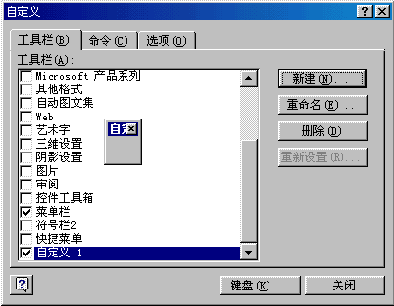 | 理工科学生在使用word编辑文章时,经常会遇到输入特殊符号的问题,例如摄氏温度符号、章节符号等,虽然这些符号可以通过软键盘或其他途径解决,但如果频繁输入就会感到很不方便。这里我向大家介绍一个好办法,就是如何建立一个自己的符号工具栏。 一、 在word97中建立符号工具栏 由于word97在安装时没有包括两个常用符号栏,所以首先要把它们添加进去。在资源管理器中打开“Microsoft Office”文件夹,再打开“Office”文件夹,用鼠标左键单击“Macros”,选中其中的“Symbar”文件,单击窗口的“复制”按钮。然后再打开“Startup”文件夹,单击“粘贴”按钮,此时“Symbar”文件就被复制到“Startup”文件夹中。以后重新启动word,我们就可以看到,在“视图”下拉菜单的“工具栏”子菜单中,增加了“符号栏1”和“符号栏2”两个名称。 这两个工具栏虽然方便了我们录入符号,但是也占用了较大的屏幕空间,而我们常用的符号可能里面还没有。这就需要建立一个更适合自己的工具栏。具体操作如下: 1.在word窗口中打开两个“符号栏”,然后打开“视图”菜单中的“工具栏”菜单,选取其中的“自定义”命令,这时系统会弹出一个“自定义”对话框。 2.单击“自定义”对话框的“新建”按钮,此时又会出现一个“新建工具栏”对话框,系统默认名为“自定义1”,你也可以输入任意名称如“专业”。 |