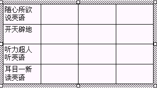打开一个网格框,从表格网格的左上角拖动,拖出4行×4列,释放鼠标,表格就完成了。在表格绘制成后,“表格与边框”工具栏也随表格一同出现,使你对表格编辑起来更方便。我们把表格中的这些小方框叫做单元格,要在表格中输入文字,就是在这些单元格中填入文字。将光标在表格中任意一个单元格中单击一下,然后输入文字,