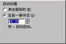 在右边的启动动画选项中,“单击鼠标时”处于选中状态 ,说明动画出现前要单击一下鼠标。如果想让动画不用单击鼠标也能一个接一个地放,就选中下面的选项,“在前一事件后0秒,自动启动”,还可以设置时间间隔,控制播放过程。(如图8)