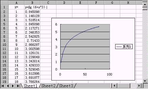 | 教师篇 |  | | 一、教案的制作 二、制作简单的试卷 三、演示文稿的制作 四、学生档案管理 五、成绩统计和分析 六、绘制函数曲线 1.自变量的输入 2.输入函数式 3.绘制曲线 4.相关问题 | | | 教师篇 ----绘制函数曲线 目标:帮您轻松画好一条复杂的函数曲线。 实例:给出了一个函数式所对应的曲线的例子。  难点分析: 一些教师会遇到画函数曲线的问题吧!如果想快速准确地绘制一条函数曲线,可以借助EXCEL的图表功能,它能使您画的曲线既标准又漂亮。您一定会问,是不是很难学呀?其实一点儿也不难,不信您就跟我试一试。 以绘制y=|lg(6+x^3)|的曲线为例,其方法如下: 1) 自变量的输入 在某张空白的工作表中,先输入函数的自变量:在A列的A1格输入“X=”,表明这是自变量。  再在A列的A2及以后的格内逐次从小到大输入自变量的各个值;实际输入的时候,通常应用等差数列输入法,先输入前二个值,定出自变量中数与数之间的步长,然后选中A2和A3两个单元格,使这二项变成一个带黑色边框的矩形,再用鼠标指向这黑色矩形的右下角的小方块“■”,当光标变成“+”字型后,按住鼠标拖动光标到适当的位置,就完成自变量的输入。  上一节 下一节 | |