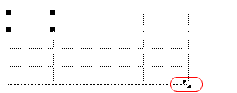 也可以用工具栏上的按钮来创建表格。单击“创建表格”的按钮,光标变为十字形,在页面的空白处按下鼠标左键,然后拖动鼠标,在拖过的范围内出现表格虚框(如左图所示),显示表格的行列,放开鼠标时,表格的虚线就变成实线(如右下图所示)。
