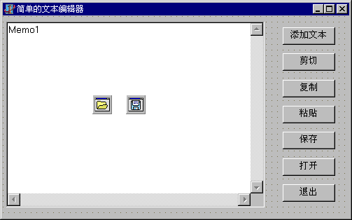 下面我们使用Memo组件的这些特性制作一个简单的文本编辑器,可以实现文本的拷贝复制,并可以进行文本的保存和装载。当然程序的功能还很简单,我们还可以进一步扩展。这里是入门教程,所以不宜太复杂。