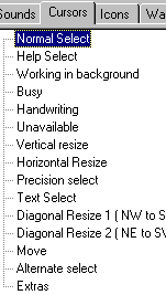 (1)设置图案 举个设置鼠标形状的例子。 点击按纽Cursors/Normal Select,这是设置鼠标在正常情况下的的形状。