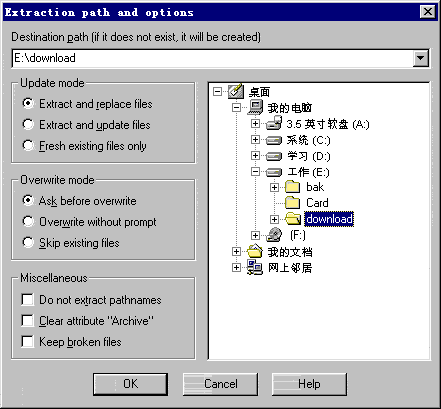 | Windows版 简介 下面介绍Windows环境下的WinRar2.50。 WinRar2.50的压缩比比较高,而且WinRAR 2.5支持ZIP文件的压缩、解压,全新的图形用户操作界面使它的易用性可以和目前最流行的压缩软件WinZIP 7.0/8.0相提并论。 正确安装WinRar2.50后,双击WinRar2.50图标便进入操作界面,WinRar2.50采用了Windows 98中流行的浮动式工具栏,在工具栏下面是文件列表框,文件列表框和我们的资源管理器的用法差不多,用鼠标双击一个文件夹,可以进入这个文件夹, 在WinRar2.50中也可以像在Winzip中那样用鼠标来选择要压缩的文件,如果需要改变当前的驱动器,就点一下工具栏右侧的这个下拉列表,从中选择合适的驱动器。 单击工具栏上的这些按钮可实现WinRar2.50的常用功能: Add 增加需压缩的文件到压缩文件中 View 在压缩文件内查看文件具体内容 Delete 在压缩文件内删除文件 Repair 修复被破坏的压缩文件 Estimate 评估压缩文件的压缩比 Extract 解开压缩文件 Test 检查压缩文件(包括子文件夹) 压缩 如果要压缩文件,先用鼠标选择好文件,再点一下“Add”按钮,弹出的对话框中“Archive”项是压缩文件的路径和文件名,点“Browse”指定好文件名;“Archive format”中可以选择压缩成RAR文件,还是压缩为ZIP文件,我们选择默认的RAR,点"OK"按钮,看,RAR己经开始压缩文件了。 解压缩 解压缩的过程也非常简单,先选好要解压缩的文件,比如这个“sinba.rar”,再点一下工具栏上的“Extract”按钮,在弹出对话框的“Destination path”中输入要解压缩到的目录,或从右面的目录树中选择一个目录,点“OK”按钮,文件就被解压缩到这个目录中了。  分卷压缩 WinRAR 2.5有很方便的分卷压缩功能,可以指定每一个压缩包的大小。在压缩窗口中有一项“Volume size”,我们可以在这里指定一个压缩包的大小,这样,WinRAR就会把文件按指定的大小压缩成几个压缩包了。 解压缩部分文件 WinRAR中把压缩文件做为一个文件夹来管理,在它的文件列表中,我们双击一个RAR文件,可以像查看文件夹一样查看压缩文件内部的文件,而且还可以选择这些文件进行解压缩。 其解压缩的方法也很简单,先选定要解压缩的文件,再点一下工具栏上的“Extrace to”按钮,在弹出的解压缩对话框中选择好要解压的目录,点“OK”按钮,被选定的文件就被解压缩到指定的目录中了。