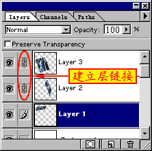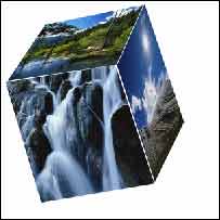 |  6. 选中没有被隐藏的风景图层,单击Edit(编辑)菜单的Transform(变形)项,选择Distort(扭曲变形)命令。 7. 拖动变形框上的小方块,使当前的风景图层变形为立方体的一个表面。按回车确认变形。 8. 在图层面板上点开另一风景图层,并按照上面的方法对该图层进行扭曲变形(Distort),使它变形为立方体的另一个表面。注意立方体表面的交界要留出一条亮边。 9. 以相同的方法对第三个风景图层进行扭曲变形,使之成为立方体的上表面。  10. 在Layers面板上单击其他两个风景图层左边第二栏,出现一个层链接图标 。使用移动工具将风景层一起移动到背景层的中央。  11. 合并图层,完成立方体贴图的制作。 上一页 |