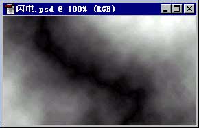 3、单击虑镜菜单,选择渲染,再选择分层云彩虑镜。( Filter > Render > Difference Clouds )得到下面的效果。(注意:因为分层云彩的效果是随机产生的,故要创建好的闪电效果,就要多次重复这一步骤,直到得到满意的效果) 4、单击图象菜单,选择调整,选择自动色阶命令(Image>Adjust>Auto Levels),自动色阶调整后的图象如下。