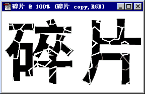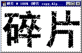 11、按 Ctrl键,用鼠标单击Alpha 1通道将Alpha 1通道内的选区载入,图象中的裂纹区域被包括在载入的选区中。 12、用右键点击Alpha 1通道,在弹出菜单中选择delete,删除Alpha 1通道。 13、点击图层面板,确定“碎片”层为当前层,按Delete键清除选区。 14、右键单击“碎片”图层,选择“效果”(Effect),在弹出的对话框中设置,Drop Shadow,Mode为Soft Light,Opacity为75%,Angle为120,Distance为5,Blur为5,Intensity为0,点击“ok”按钮。 15、单击图层面板右上角的三角按钮,在菜单中选择Merge Layers合并图层。就可得到预览图象效果。