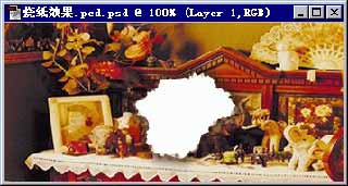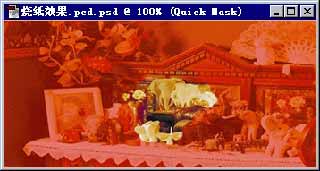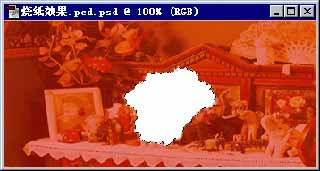13、单击“OK”按钮,此时图象的烧纸效果就基本产生了,单击“Channels”面板中的“Quick Mask”旁边的