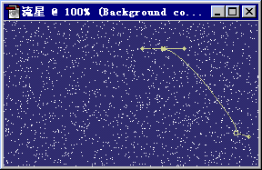 8、现在我们来做流星效果。点击工具箱中的钢笔工具,在图象中创建一个只有两个节点的路径,注意,应先点击下面的节点。 9、点击钢笔工具