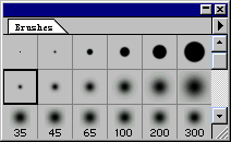 11、在“Brush”面板中选择最小的模糊圆形(如果你的面板没有显示出来,那就点击window/show brush),如图。