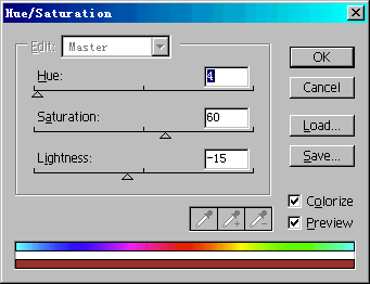 8、接下来我们要填充按钮的颜色。单击菜单“Image > Adjust > Hue/Saturation”,在Colorize前面打上小钩。拉动saturation的小滑块使值变为70。移动到最顶的 Hue 寻找自己喜欢的颜色,按下图的设置就是本例子红色按钮的设置(本例子中蓝色按钮的设置为:Hue:229,Saturation:224,Lightness:-8)。单击“ok”按钮即可。