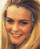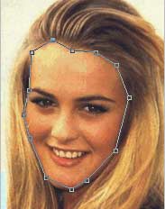 7、此时你可以看到图象基本就移过来来了,但是你发现没有图象有很多都不太合理,如图象的边缘太锐利,以及图象的额头部分及颜色都不太自然,给人一种带了假面具的感觉? 8、在工具箱中选择多边套选工具