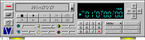 |  WINDVD的播放器上有很多按钮,其中有很多与工具栏上的按钮作用相同。它的样子与单独的DVD播放器差不多。 左面的关闭、打开“播放表”窗口、打开“属性”窗口按钮前面已经介绍过了。中间的一组方向按钮作用和形态与状态栏中的完全相同。 在方向按钮下面有六组滑块, 可以移动到光盘的某个特定时间。 可以增大或减小视频输出的亮度。要是看DVD的时候觉得刺眼就用得着这个滑块喽。 点击可以增大或减小音频输出。不好了,声音太大了,快快行动。 颜色控制栏1。可以调整蓝与黄两种视频颜色之间的对比度。 使慢动作或快进平滑。 颜色控制栏2。可以调整红与绿两种视频颜色之间的对比度。 在方向按钮右面是一个计数器。它显示的是当前正在播放的章节,以及开始播放后已使用的时间。 计数器右面的方向箭头与工具栏中的作用和形态完全一样。 计数器下面是数字小键盘。它提供了选择数字的方法。当VCD与DVD分为若干节时,利用数字小键盘可以在各节之间进行切换。比如一张VCD的MTV歌曲碟,用小键盘可以自由选择喜爱的歌曲。 数字小键盘右侧是菜单项目,其中包括六组菜单项目,作用分别如下: 打开一个子菜单,显示当前播放的 DVD 光盘上的所有可用主题,我们可以选择新的主题播放。 显示当前播放的 DVD 光盘上的所有可用菜单(根目录、配音语言、字幕等),我们可以通过它选择一个菜单。 打开一个子菜单,显示当前播放的章节, 我们可以从此菜单中选择另一章节。 显示当前的 DVD 光盘音轨选项。 如果有多个音轨或配音语言,我们就可以使用此菜单选择。 显示字幕菜单。 如果有多个语言的字幕,就可以用这个菜单选择我们需要的语言。 如果可以,从可选角度列表中选择观看角度。 |