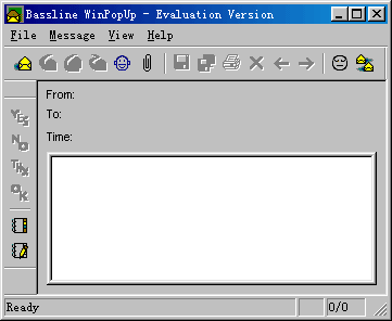 | Bassline Winpopup |  | BL-Winpopup简介 基本功能 主界面详介 消息发送框详介 补充说明 | | | | Bassline Winpopup 简介 如果你曾经是一个局域网的用户,那么,我问你一个小问题:当你有一条消息想马上告诉一个坐在别的办公室的同事,如何通过局域网来实现呢?没错,就是用它——winpopup! winpopup其实是一个统称,指在局域网(LAN)内部迅速传递短讯的这么一种小软件,微软公司的windows95/98下就自带了一个“Microsoft winpopup”,你可以在“windows”目录下找到它。不过,本文章可不是介绍Microsoft winpopup的,它其实只有一个文件,就是主程序文件,而且它的功能实在太少,满足不了今天企业和机构内部局域网的需要,严格来说它只能算是一个小“程序”。下面就要给大家介绍能够真正称为“软件”的,功能强大的Bassline winpopup。 Bassline winpopup(以下简称为 Blpop)的运行环境为Microsoft Network,并且使用IPX/SPX或NETBEUI协议。它的主要功能有:发送、接收消息,保存、打印消息,互相传递文件,即时聊天等等。它是一个共享软件,允许你在不注册的情况下试用50天,试用期间各项功能不受限制,与正式版一样。 “学海荡舟”的软件下载栏目就提供了这个软件,整个下载包大小不到400K。至于软件的安装就不多说了,一步步地照着常见的提示操作就行,非常简单—你不会没安装过软件吧? 好了,运行这个软件,下图就是它的主界面。  下一节 | |