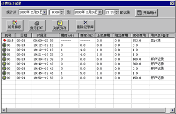 对这些统计还可以按照进行“机号排序”,“费用打印”和“列表另存”和“删除记录库”操作。