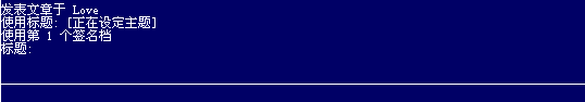 3、☆发表文章 传统的BBS软件在文章的编辑上都是完全依赖于键盘的,因此,光标的移动成了一个最大的问题。比如较为流行NetTerm,在编辑一个稍长的文章时,光标的移动便成了问题,而且“Pgup”、“Pgdn”等键还不好用,要移动鼠标只能是一行行的按光标键,又慢又麻烦。而到了CTerm里,编辑文章可就方便多了。比如我们来发表一篇文章“致橡树”。 先按“Ctrl+P”发表文章,在这儿写好主题,回车;