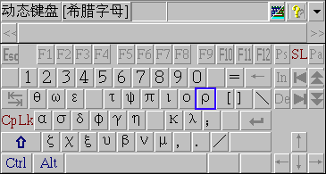 这样我们可以看到整个软键盘了!在软键盘上可以看到ρ对应于键盘上的p键,