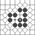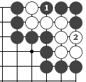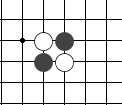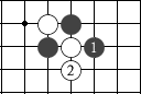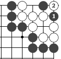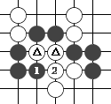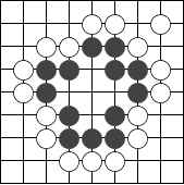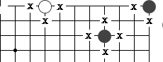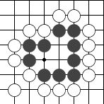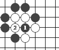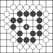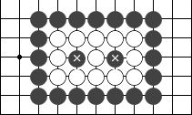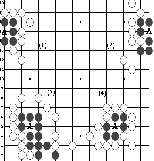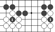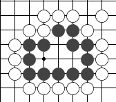 右图是让二子的局面,终局后黑方须贴还白方一个子。  左图 中图