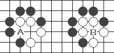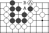 图87:黑如在A位连,那白在B位做眼活棋。