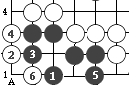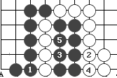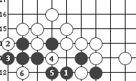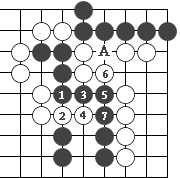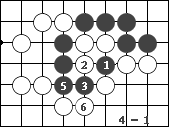 图54:黑1提吃一子大恶手。演进至白6,黑被杀。