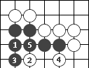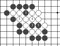 图75:黑棋的眼形象一个梅花图案,中间有五个空点,所以得名"花五"或"梅花五"。