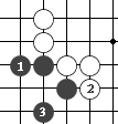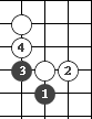 图69:黑棋的眼形称为"曲三"或"弯三"。 (图69)