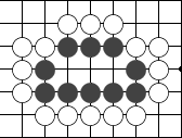 图76) 图77:黑棋这个眼形,是在"花五"的一个角上多了一个空点,由于眼形中的空点有六个,所以得名"花六"