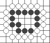 5:杀棋技巧 一块棋子被对方包围以后,它的死活决定于能不能在里面做成两个眼。