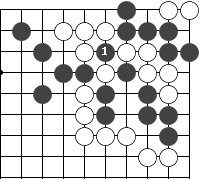图72:黑1是做活的要点。假如轮白先走,白可在1位点杀死黑棋。