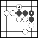 (图84) 图85:黑1连,白2扳,黑棋被杀了。