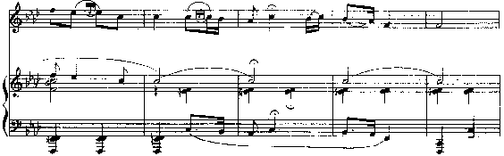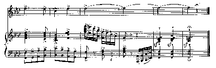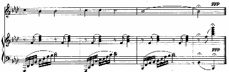(5)尾声: 经过上述一系列的发展变化,最后用泛音奏出轻盈徐缓的乐句,把全曲结束在主音上,造成余音袅袅的效果。许多琴曲的"尾声"就是这样构成的。