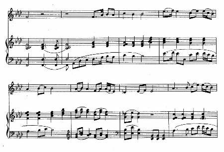 (3)入慢: 高潮之后,情绪逐步平稳下来,进入琴曲的"入慢"。这时往往利用明显的节奏对比或调性变化,把乐曲引进一个新的境界。