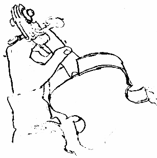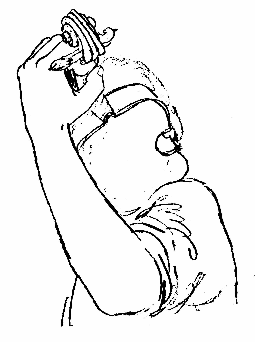 练习四:如图19 同前一样,只是这次肘部保持其本身下垂的姿势,并把拇指伸直为止。