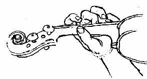 能僵直起来,而是顺其自然--略有弯曲,使拇指处于能伸直,能弯曲的状态。拇指的位置 与状态是握弓的关键,而握弓的好与坏直接影响运弓的质量,也即发音的质量。拇指的正确