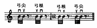 M:连断弓 连断弓是一种既要求极大的稳定性又要求极大的灵活性的运弓运动。 练习一:如图41