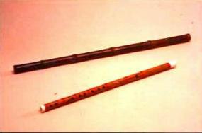 第一类,以气流吹入吹口激起管柱振动的有:箫、笛(曲笛和梆笛)、口笛等。
