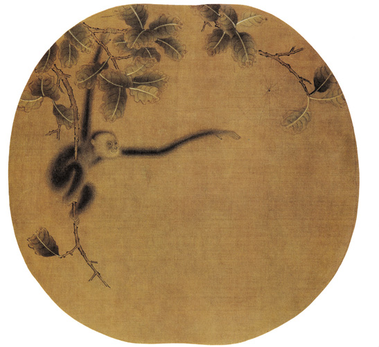 此图原载《烟云集绘册》(《石渠宝笈续篇》著录)。旧题易元吉作。易元吉,字庆之,长沙人。天资颖异,善画,得名于时,初以工花鸟专门。游于荆湖间,搜奇访古名山大川。每遇胜丽佳处,辄留其意。几与猿猱鹿同游,故心传目击之妙,则写之于毫端间,世俗之所不得窥其藩也。又尝于长沙所居之舍后,开圃造池,间以乱石丛篁,梅菊葭苇,多驯养水禽山兽,以伺其动静游息之态,以资于画笔之思致。故写动植之状,无出其右者。