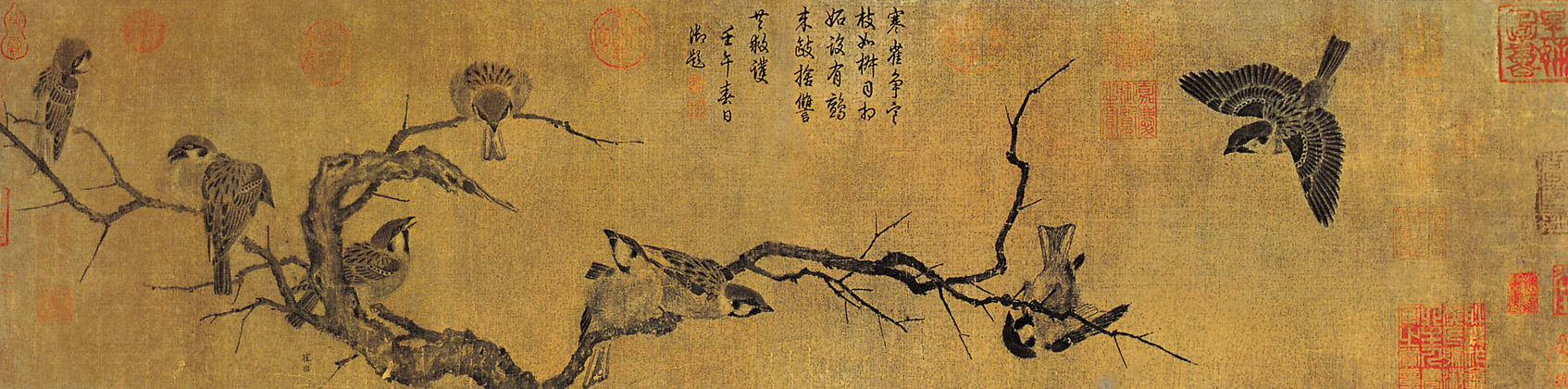 022 《寒雀图》 宋 崔白 绢本设色 纵30厘米 横69.5厘米 北京故宫博物院藏 |
