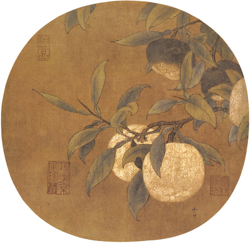 此图不知原载何册,画幅上有“马麟”二字的题名。观马麟的题名,和马远的绝不相同,其画的风格亦甚相异。麟于花卉尤工。曾见其梅花一轴,枝干苍古,而花苞鲜妍,似欲喷出清香来。此绿橘图,亦正足见其是写物的妙手也。