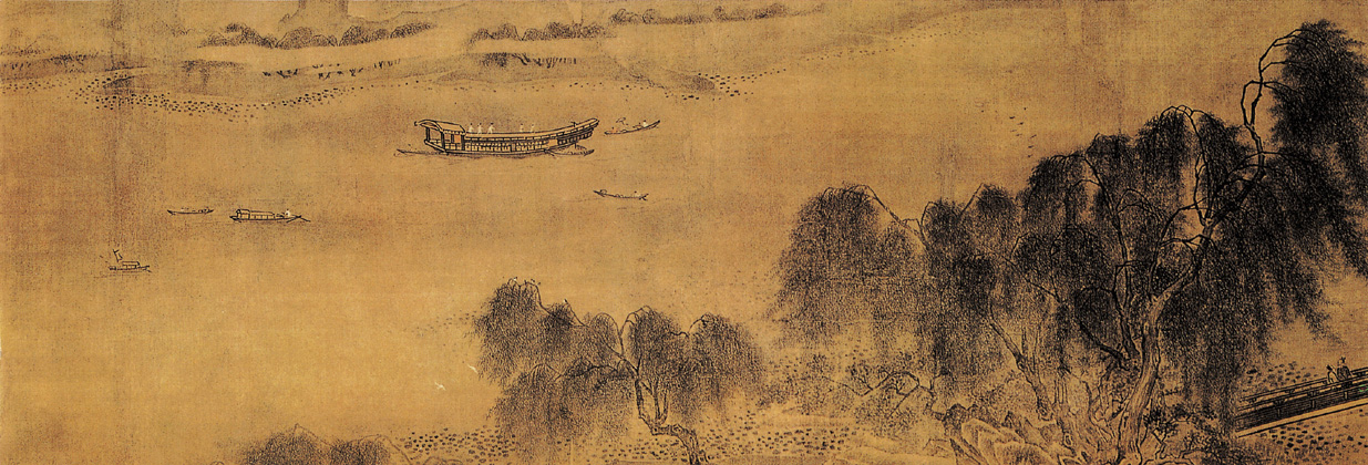 此图卷描绘一平湖柳堤、荷香清夏的景物。在广阔的湖面上,微波轻荡,碧叶莲莲,而近处群鸟,则更为画面增添无穷生趣。画中笔法细秀,描物具体,尤其柳树变化多姿,树叶丝丝勾出,又如烟动。其用墨以淡为宗,又浓淡相间,着色亦淡雅,更加烘托出了其境界的祥和安静,从中可以见出其父马远的显著影响。