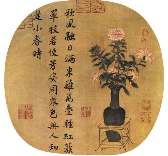 此图原载《四朝选藻图》(见《石渠宝笈续编》)。签题姚月华作,上有宁宗(1195一1224)题。签题姚月华,无考。姚月华可能是宁宗时代的一位女画家,她的画笔力纤细,画风精巧细腻。