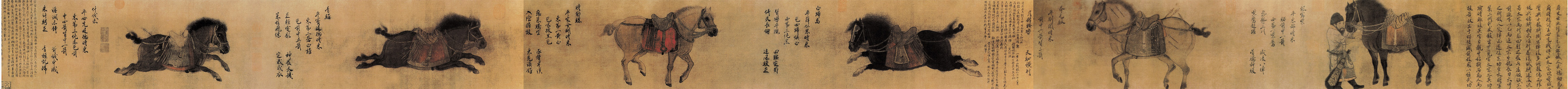 117 《六骏图》 金 赵霖 绢本设色 纵27.4厘米 横444.2厘米 北京故宫博物院藏 |