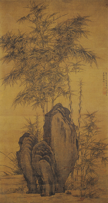刘秉谦的作品元气淋漓,天真烂漫。《竹石图》画竹石的风雨变化,追求天趣。竹干以中锋运送,略呈飞白笔法,由根至梢,粗细得体,笔意相属,竹叶顺枝而出,浓淡相叠,以现向背,用笔挺劲洒脱,而俱在法度之中。