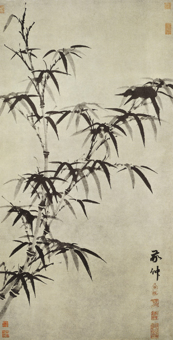 元代画竹之风,可分两派:工笔勾勒青绿设色者称为“画竹”;水墨写意者称为“写竹”。尤以写竹为盛。而写竹者除高克恭、赵孟頫外,当推柯九思。此画笔墨流畅,富清丽之姿,枝节舒展,竹叶向背由浓淡而分,墨竹由左下方上扬,一股清雅风扬的状态。笔墨不多,以小见大,显示出柯九思画竹苍苍茫茫的独特风格。