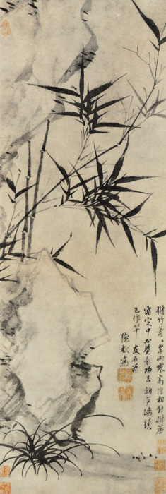 王绂画竹虽承前人文同、吴镇墨竹画遗风,但行笔更劲逸潇洒,状物法度更精严,强调笔墨韵味和文人情怀,有“出姿媚于遒劲之中,见洒落于纵横之外”之评,故当时称他画竹“为国朝第一手”。此图写晴日幽篁,用笔秀发,为元以后的新创风格。