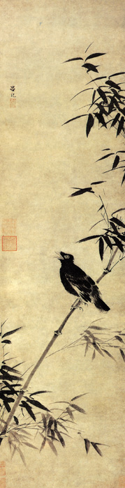 吕纪多画凤凰、仙鹤、孔雀、鸳鸯之类,杂以花木草石,俱有生气。工笔着色与水墨写意兼能,并善于将两体结合。此外也偶作山水人物。是明代与边景昭、林良齐名的院体花鸟画代表画家。《竹枝鹧鸪图》整个画面,用笔粗简,荷叶、芦苇、水草似一气画成,墨色淋漓,接近林良一路粗放简约的画派。曾被明内府收藏。