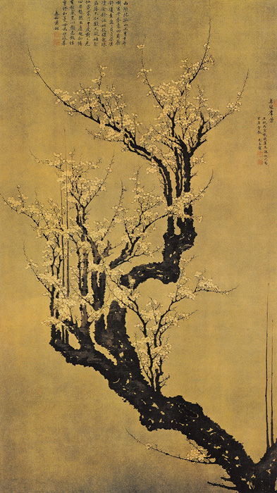 王谦(14—15世纪),字牧之,号冰壶道人。善画梅花,系从王冕画派发展而来,与鄞县陈宪章齐名。此图写千花万蕊,表达出梅花的优美丰姿,是作者经意之笔。